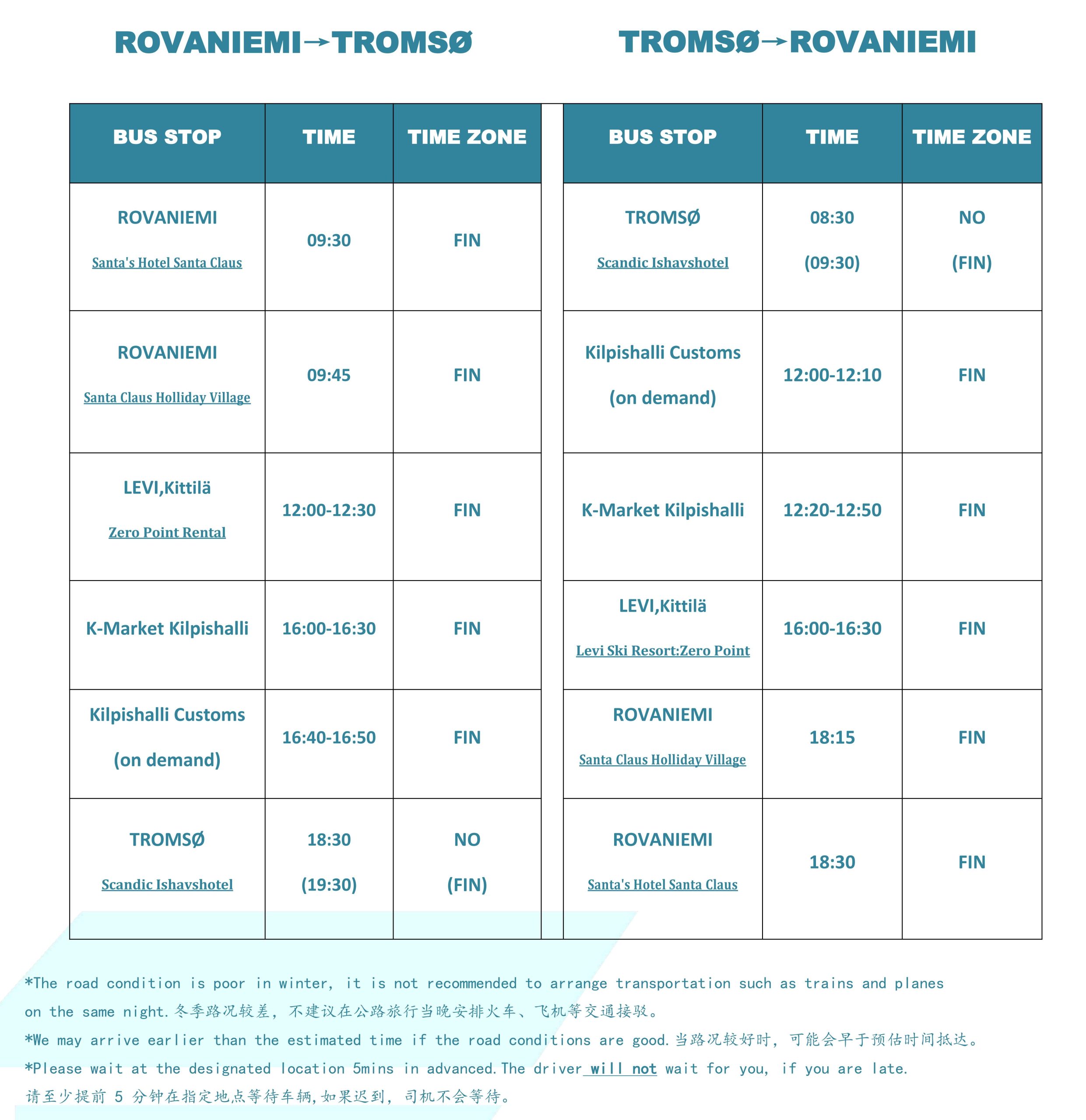 Discover Norway (Tromsø) and Finland (Rovaniemi) by minivan. This route will connect you to both destinations on a single day, stopping at several other interesting destinations in Laplad Finland such as the Levi Ski Resort, Kilpisjarvi and the Santa Claus Village.